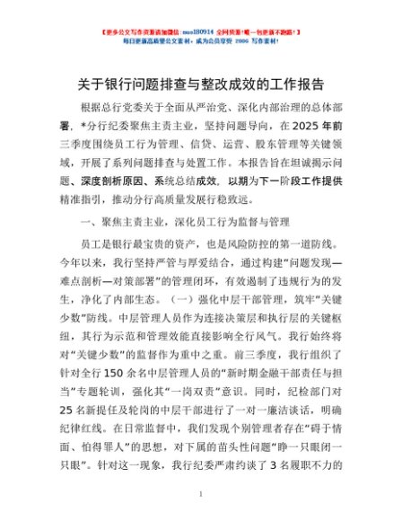 / 关于银行问题排查与整改成效的工作报告
