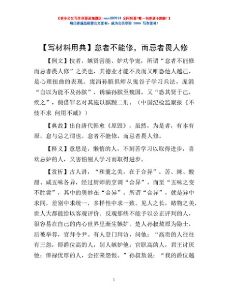 / 【写材料用典】怠者不能修,而忌者畏人修