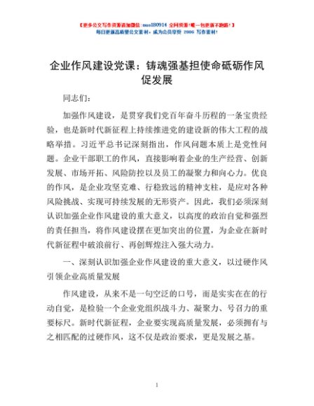 / 企业作风建设党课:铸魂强基担使命 砥砺作风促发展