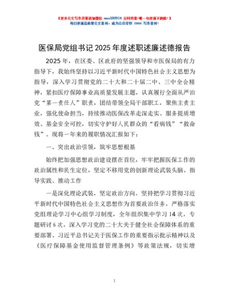 / 医保局党组书记2025年度述职述廉述德报告