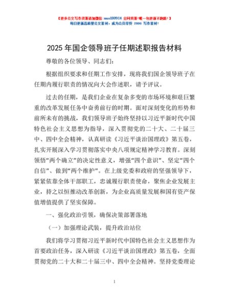 / 2025年国企领导班子任期述职报告材料