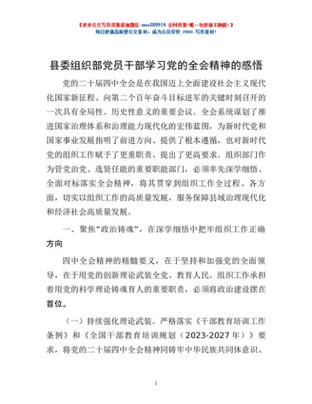 / 县委组织部党员干部学习党的全会精神的感悟