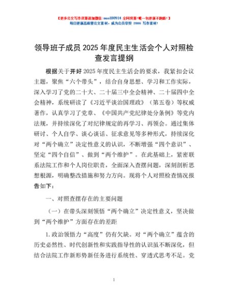 / 领导班子成员2025年度民主生活会个人对照检查发言提纲