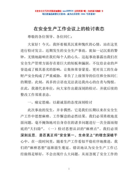 / 在安全生产工作会议上的检讨表态