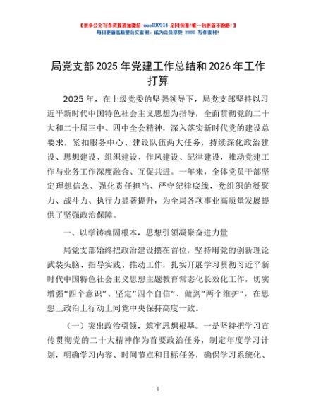/ 局党支部2025年党建工作总结和2026年工作打算