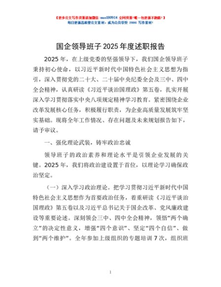 / 国企领导班子2025年度述职报告
