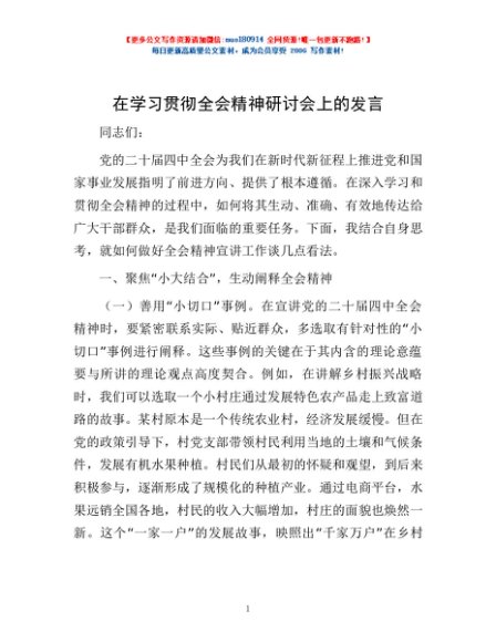 / 在学习贯彻全会精神研讨会上的发言