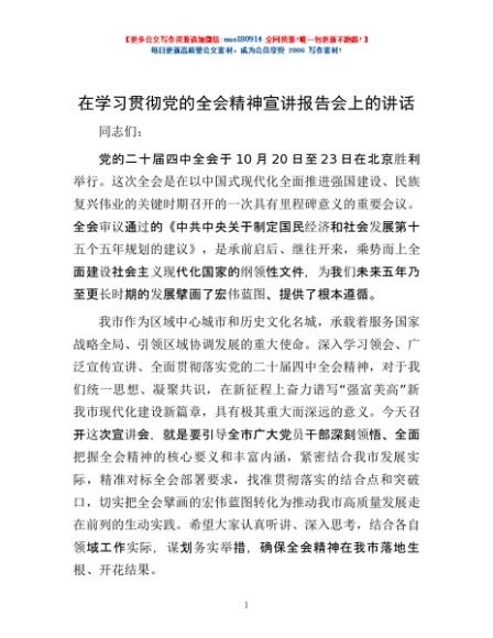 / 在学习贯彻党的全会精神宣讲报告会上的讲话