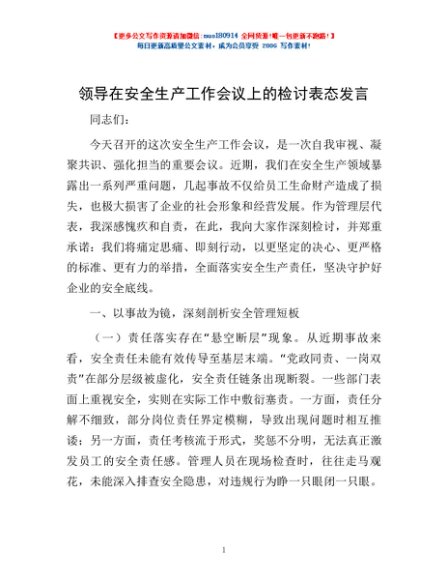 / 领导在安全生产工作会议上的检讨表态发言