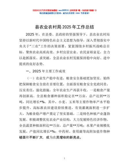 / 县农业农村局2025年工作总结