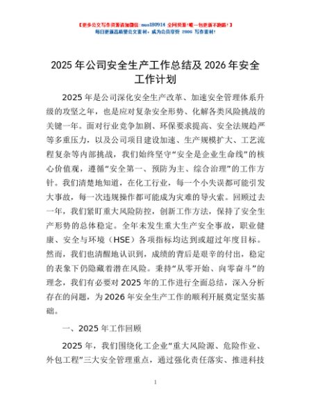 / 2025年公司安全生产工作总结及2026年安全工作计划