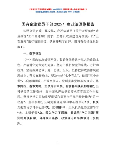 国有企业党员干部2025年度政治画像报告