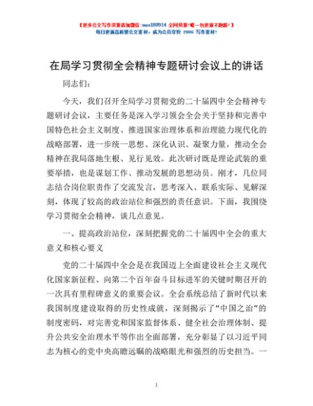 / 在局学习贯彻全会精神专题研讨会议上的讲话
