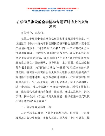 / 在学习贯彻党的全会精神专题研讨班上的交流发言