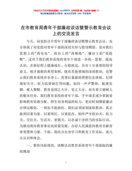 / 在市教育局青年干部廉政谈话暨警示教育会议上的交流发言
