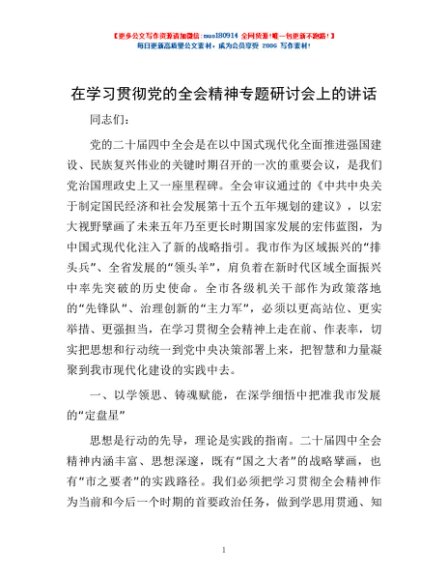 / 在学习贯彻党的全会精神专题研讨会上的讲话