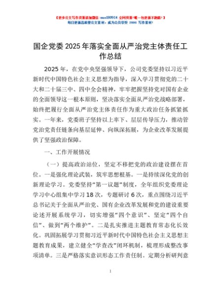 / 国企党委2025年落实全面从严治党主体责任工作总结