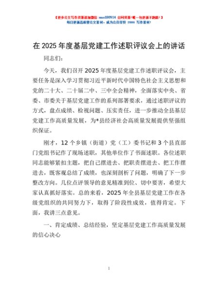 / 在2025年度基层党建工作述职评议会上的讲话