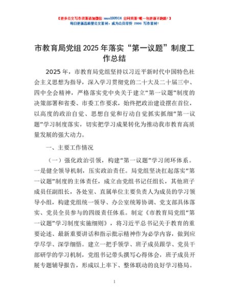 / 市教育局党组2025年落实“第一议题”制度工作总结
