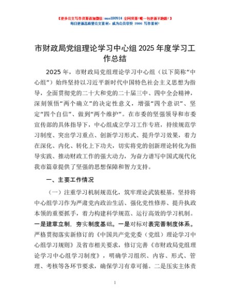 / 市财政局党组理论学习中心组2025年度学习工作总结