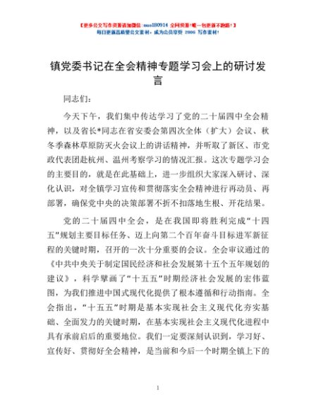 / 镇党委书记在全会精神专题学习会上的研讨发言
