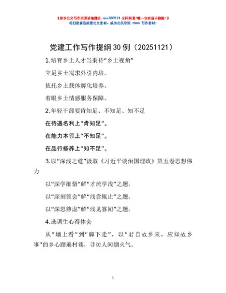 / 党建工作写作提纲30例(20251121)