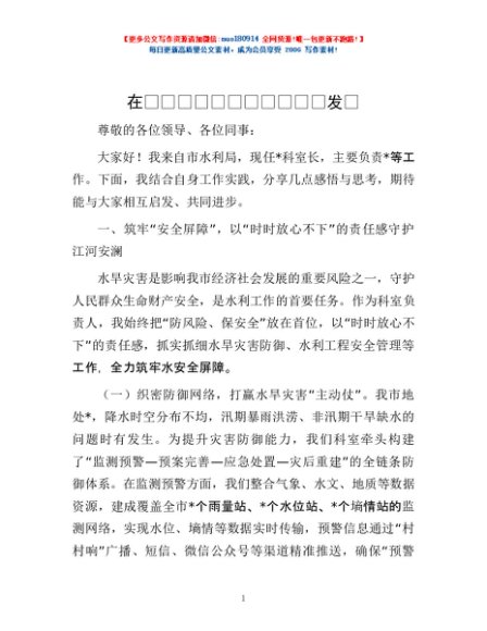 / 在市委党校科级班上的交流发言