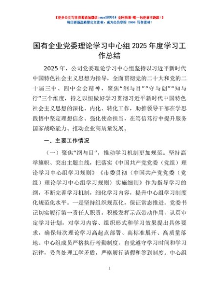 / 国有企业党委理论学习中心组2025年度学习工作总结