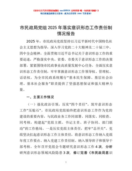 / 市民政局党组2025年落实意识形态工作责任制情况报告