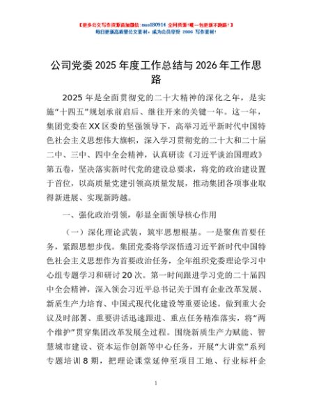 / 公司党委2025年度工作总结与2026年工作思路