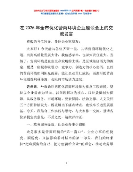 / 在2025年全市优化营商环境企业座谈会上的交流发言