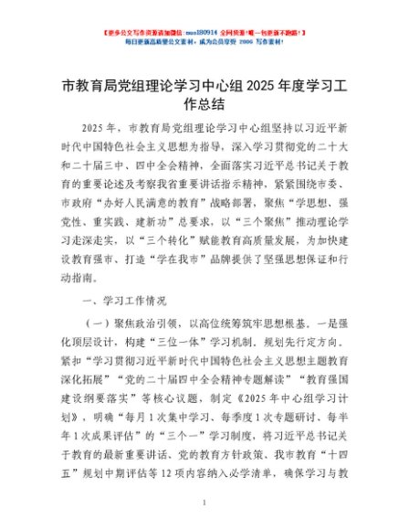/ 市教育局党组理论学习中心组2025年度学习工作总结