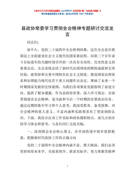 / 县政协常委学习贯彻全会精神专题研讨交流发言