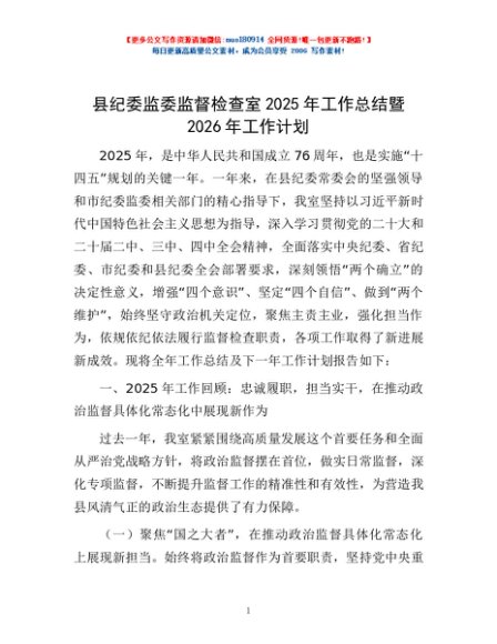 / 县纪委监委监督检查室2025年工作总结暨2026年工作计划