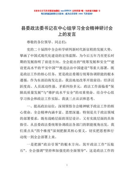 / 县委政法委书记在中心组学习全会精神研讨会上的发言