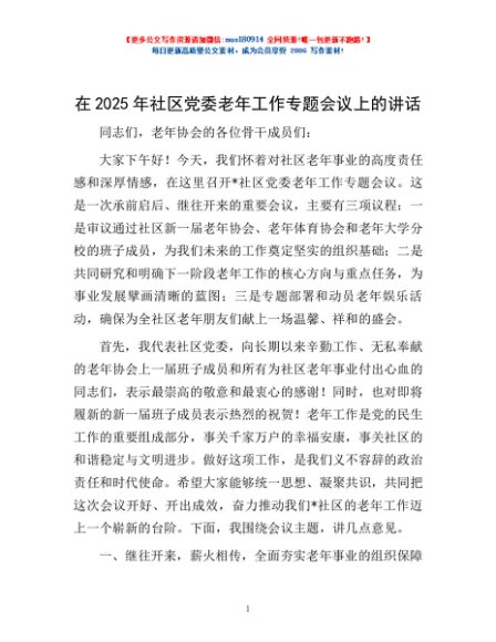 / 在2025年社区党委老年工作专题会议上的讲话