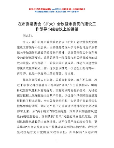 / 在市委常委会(扩大)会议暨市委党的建设工作领导小组会议上的讲话
