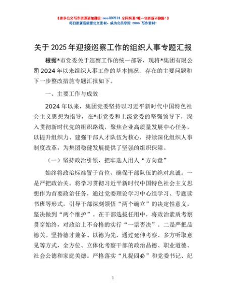 / 关于2025年迎接巡察工作的组织人事专题汇报