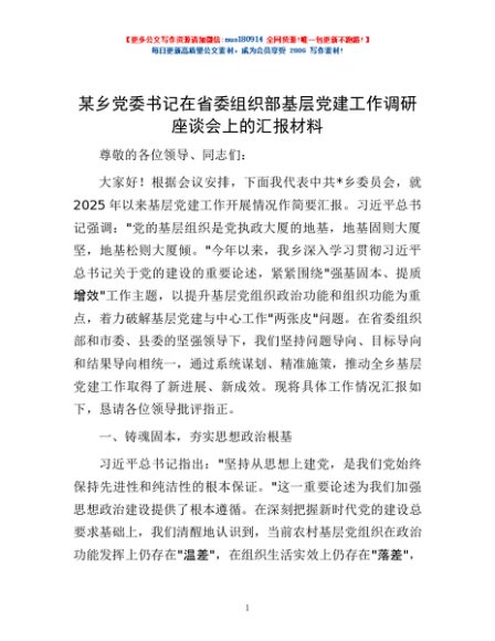 / 某乡党委书记在省委组织部基层党建工作调研座谈会上的汇报材料
