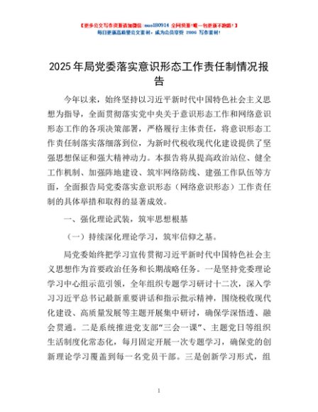 / 2025年局党委落实意识形态工作责任制情况报告
