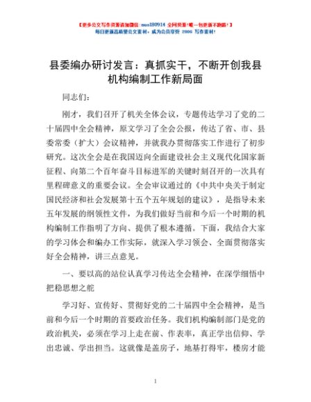 / 县委编办研讨发言:真抓实干,不断开创我县机构编制工作新局面