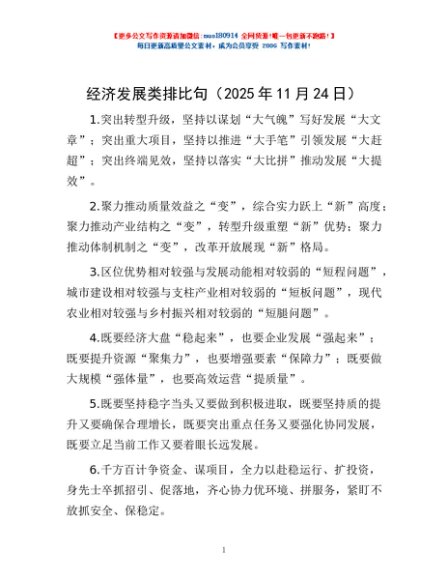 / 经济发展类排比句(2025年11月24日)
