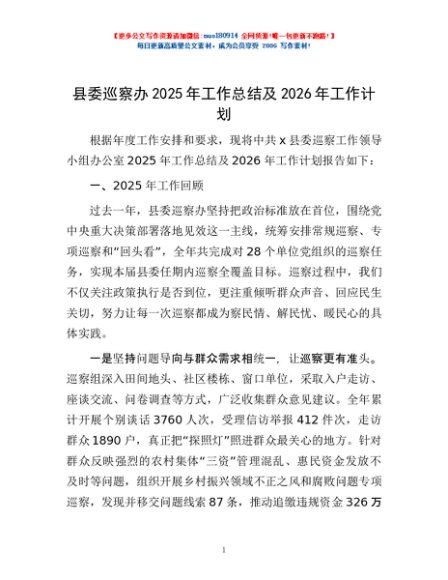 / 县委巡察办2025年工作总结及2026年工作计划