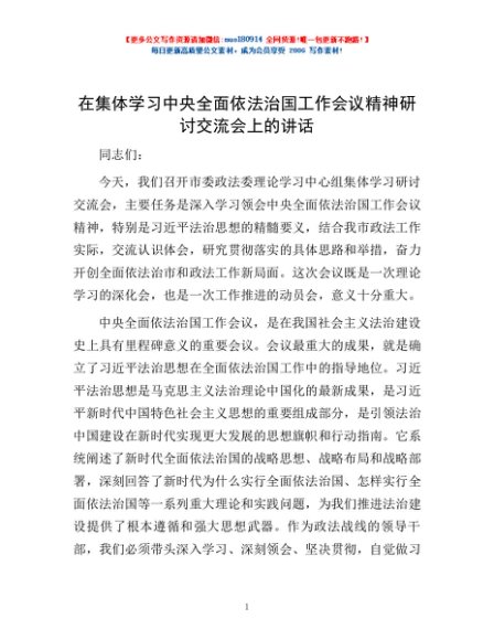 / 在集体学习中央全面依法治国工作会议精神研讨交流会上的讲话