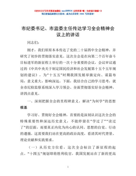 / 市纪委书记、市监委主任传达学习全会精神会议上的讲话