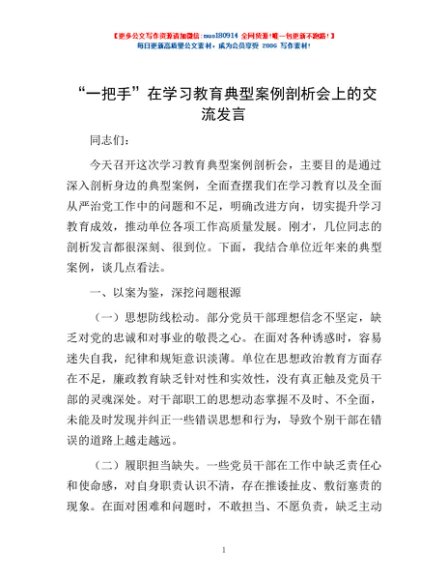 / “一把手”在学习教育典型案例剖析会上的交流发言