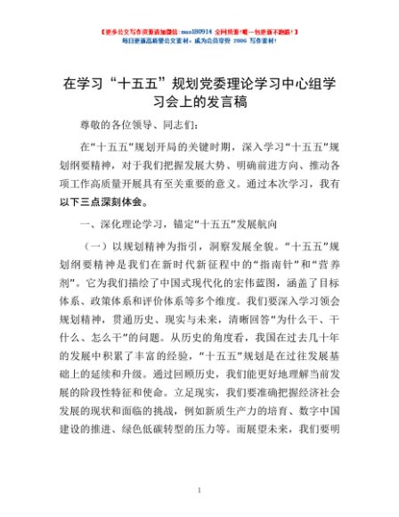 / 在学习“十五五”规划党委理论学习中心组学习会上的发言稿