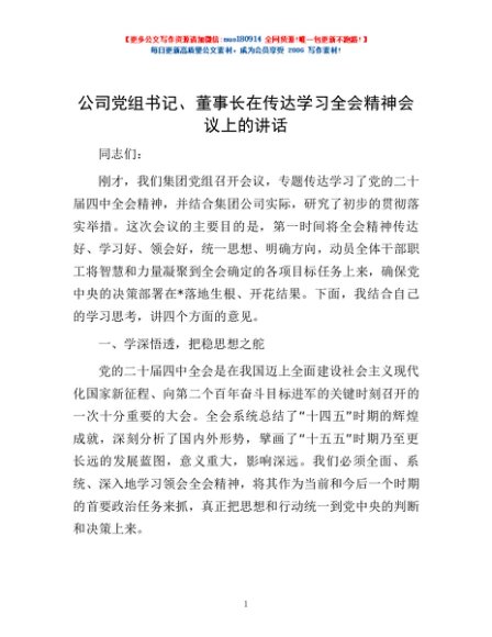 / 公司党组书记、董事长在传达学习全会精神会议上的讲话