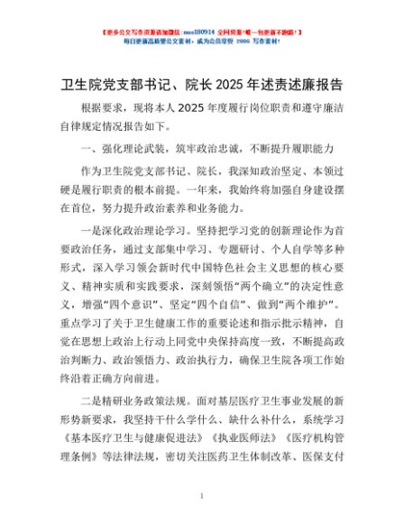 / 卫生院党支部书记、院长2025年述责述廉报告