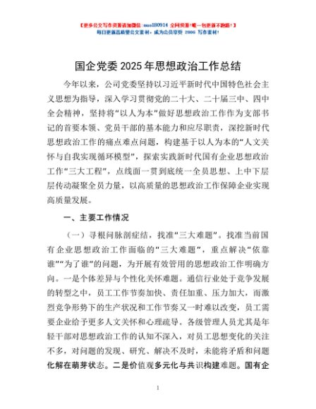 / 国企党委2025年思想政治工作总结